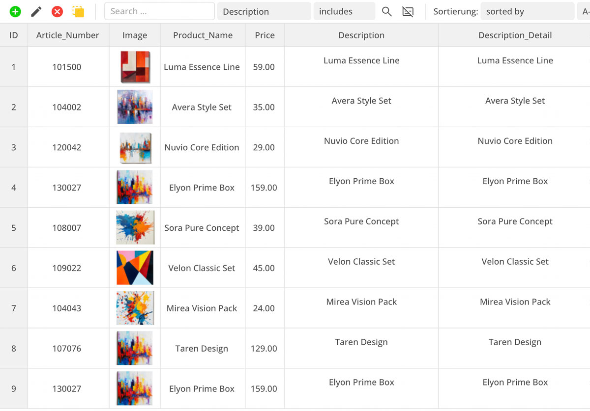 Databasen kan især nemt administreres i tabelform. Indhold som shop-artikler eller blogindlæg opretter du lige så nemt som indlæg på sociale medier.